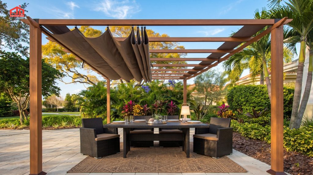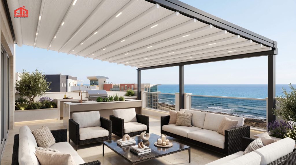 Ngoài ra, hệ thống phụ kiện như motor điều khiển, ray trượt, dây cáp và cơ cấu kéo cũng đóng vai trò quan trọng trong quá trình vận hành. Một hệ mái che chất lượng không chỉ nằm ở vật liệu chính mà còn ở sự đồng bộ của toàn bộ hệ thống.