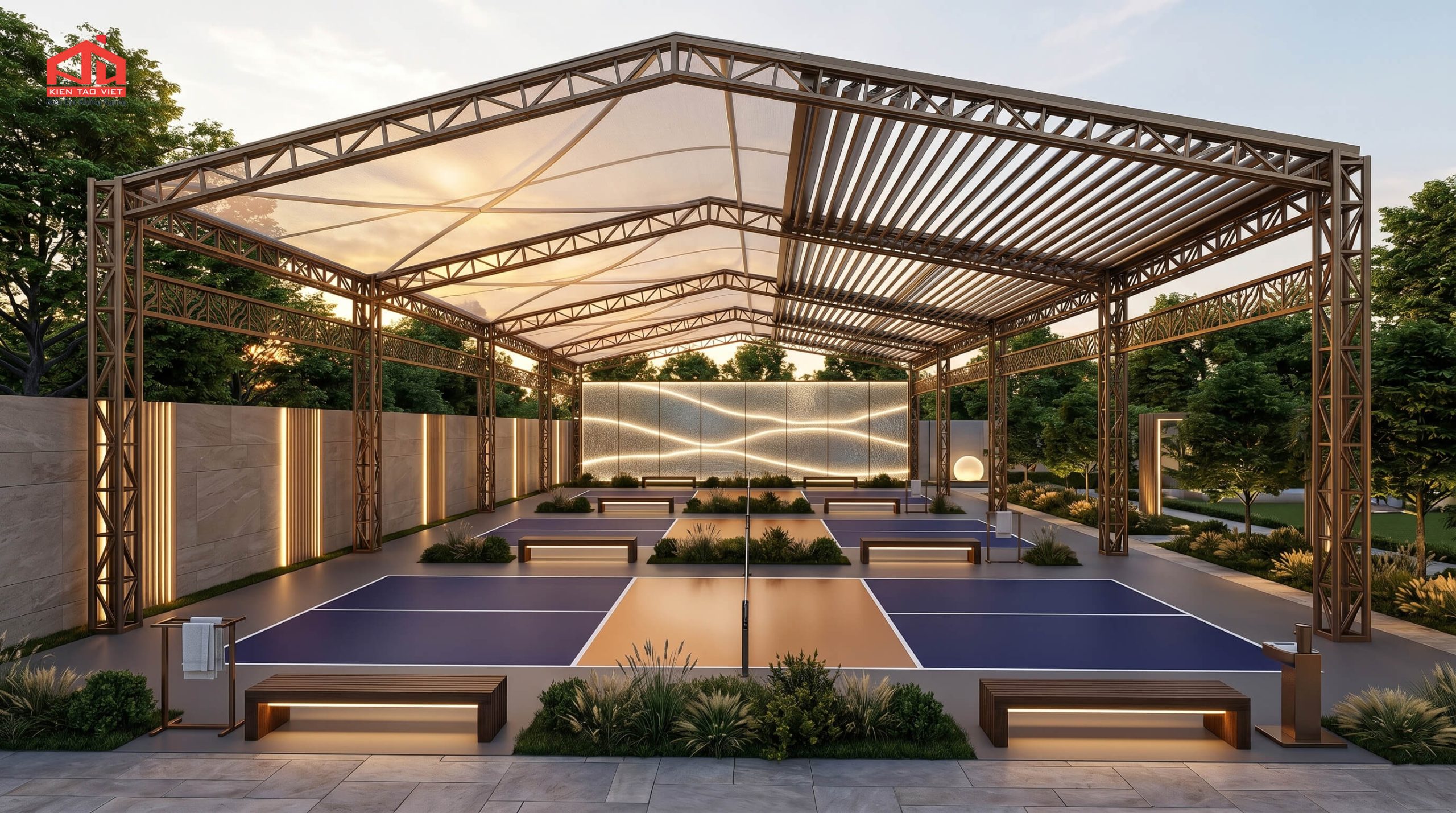 Thiết kế mái che sân pickleball